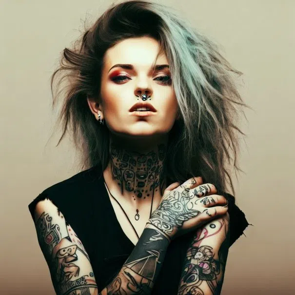 Con su aro en la nariz, mechones de pelo azul y tatuajes de los hombros […]