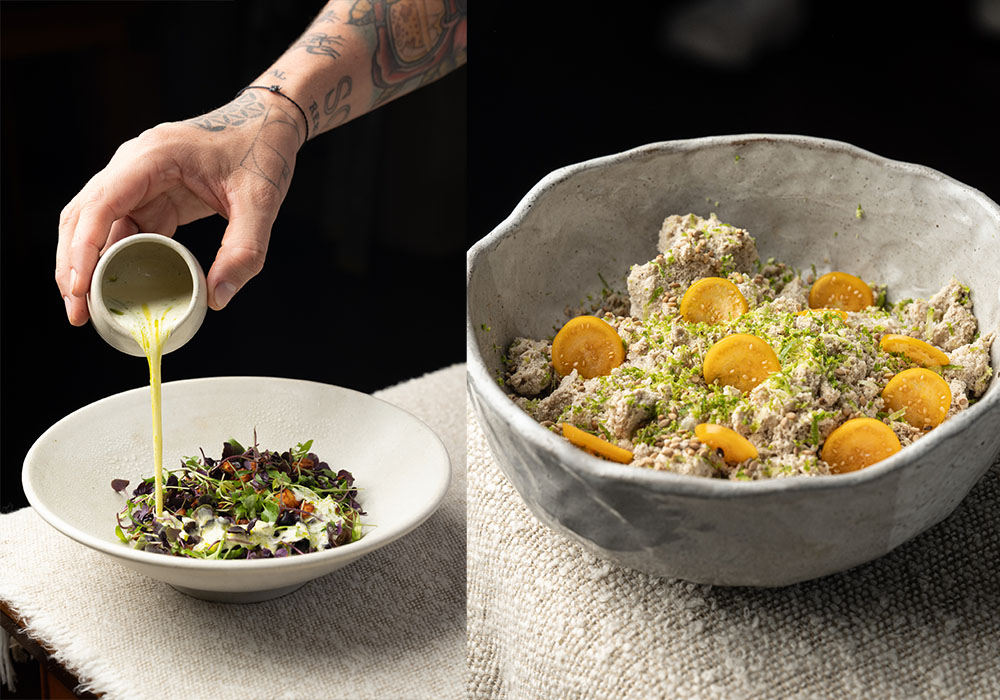 Afluente, entonces, dista de las ideas preconcebidas que suelen rodearlo. En alguna ocasión, alguien preguntó: “¿voy a comer matas?”. La respuesta es no. Afluente es, ante todo, trabajo honesto, una presión constante por lograr que cada detalle funcione con precisión, sin recurrir a espectáculos innecesarios. Es un espacio concebido para poner a prueba el gusto, comer sin afán, acompañar la experiencia con vino o un cóctel de feijoa, y concluir con un café de especialidad.
